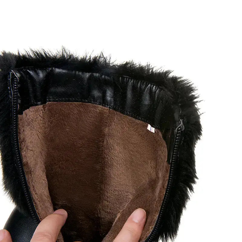 Step into winter with style and confidence wearing the Chic Frost Women's Chunky Heel Winter Booties. Expertly crafted for both comfort and durability, these booties feature a robust chunky heel that offers unparalleled stability on slippery surfaces. The plush interior lining ensures your feet stay warm and cozy, while the premium exterior provides a chic, fashionable look. Perfect for pairing with any winter ensemble, these booties are an essential wardrobe addition for the discerning fashionista. Whether it's a casual outing or a formal event, the Chic Frost booties effortlessly combine functionality with elegance.