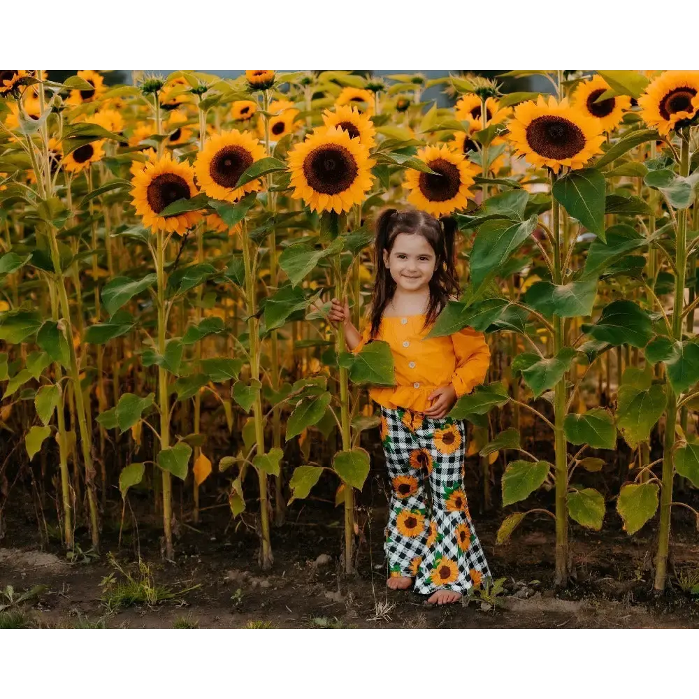 SunnyPlaid Kids 3 Piece Autumn Outfit Set with Scarf